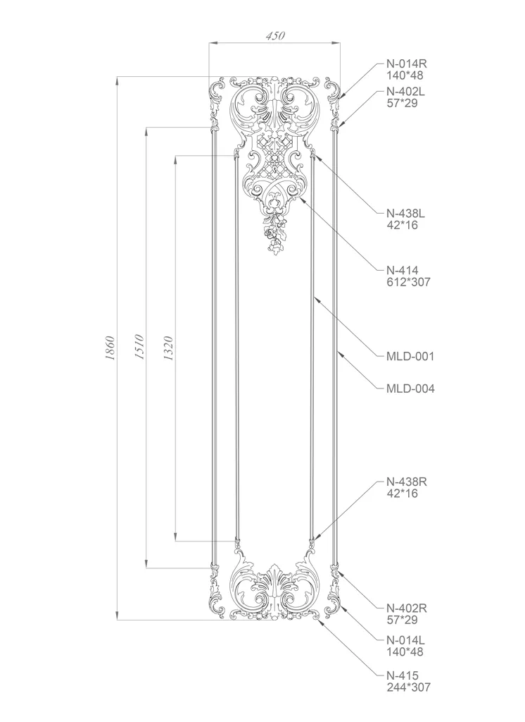 ● Carved molding end N-402L: left end with floral ornament