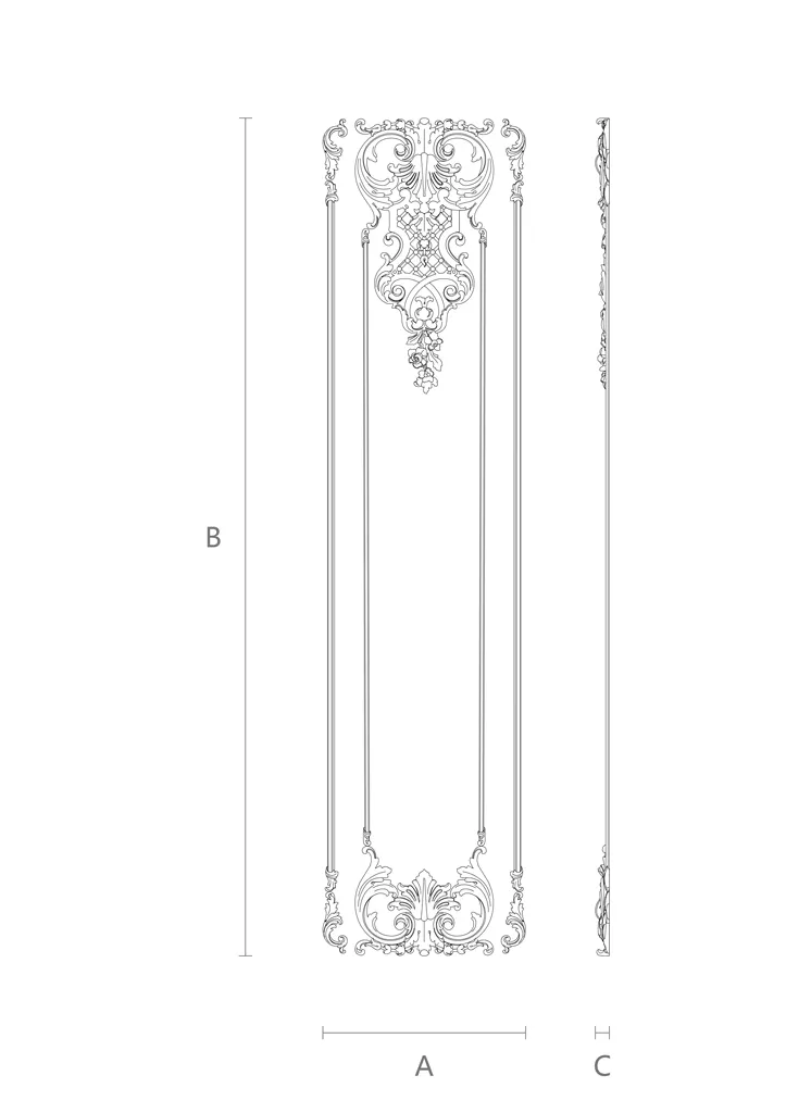 The C-005-1-2 wooden decor set has a unique and elegant design suitable for any interior style. It consists of carved appliqués with different shapes, sizes, carvings, and ornaments. They create a floral ornament composed of various types of flowers, leaves, and branches. They evoke the feeling of living nature, bringing freshness, beauty, and harmony into the interior. They create a sense of volume, relief, and contrast, which adds dynamism, expressiveness, and individuality to the interior.