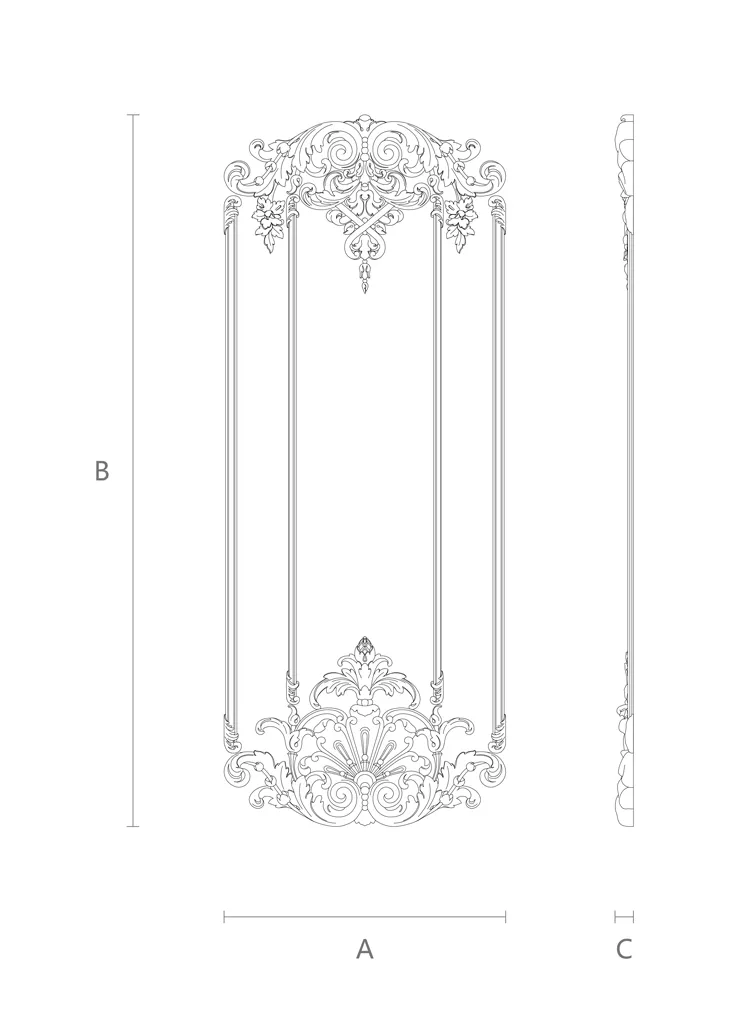 ● Furniture facade decoration. You can decorate your furniture facades with the wooden decor set C-008-1, giving them a finished and elegant look. Inlays can be attached to the edges, corners, or center of furniture facades. Inlays will highlight the beauty and quality of your furniture, as well as conceal possible defects or scratches. Inlays can also be used to create carcasses - decorative frames around furniture facades, which give them volume and elegance.
