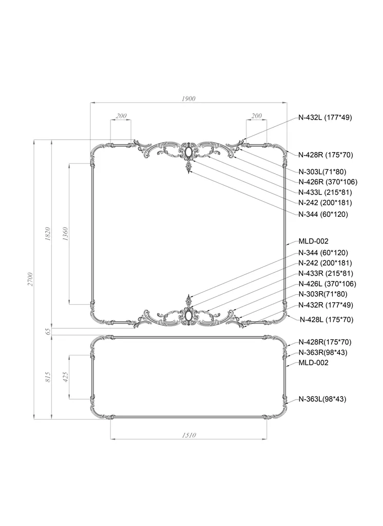 Decor Set C-009-1-2 made of wood Crafted with skill and taste. Each applique is adorned with a carved ornament of leaves and flowers, creating a sense of depth and relief. The appliques have different shapes and sizes, allowing you to combine them in various ways and create unique compositions. The appliques are suitable for decorating furniture facades, doors, windows, fireplaces, arches, walls, and other interior items. With the decor set C-009-1-2, your furniture and interior will transform and become more refined and elegant.