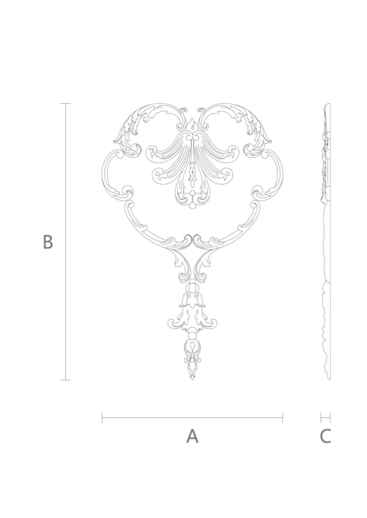 Decor Set C-041 made of wood - this set includes eight carved appliqués, crafted in one style and harmoniously complementing each other. These appliqués are made from oak or beech - two strong and durable wood species, distinguished by their beautiful texture and color. Wood carving is an art that requires skill, patience, and attention to detail. Each appliqué from the set C-041 is the result of skilled craftsmen who create unique patterns and ornaments on the surface of wood. These appliqués not only decorate furniture but also protect it from damage and wear.