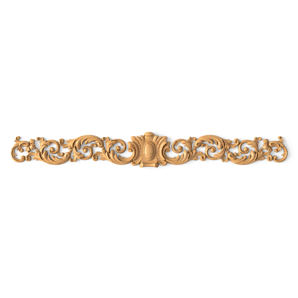 The central part of the inlay is a vertically oriented cartouche, surrounded by smooth plant scrolls that create a dynamic rhythm and add expressiveness to the composition. The side elements are symmetrical acanthus leaves with characteristic detailing of veins and natural curves, emphasizing the craftsmanship and attention to detail.