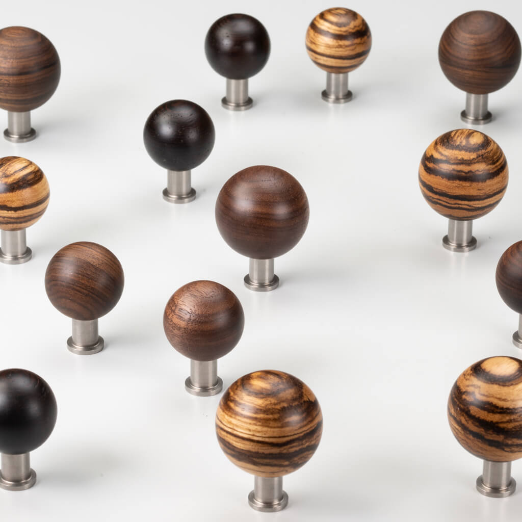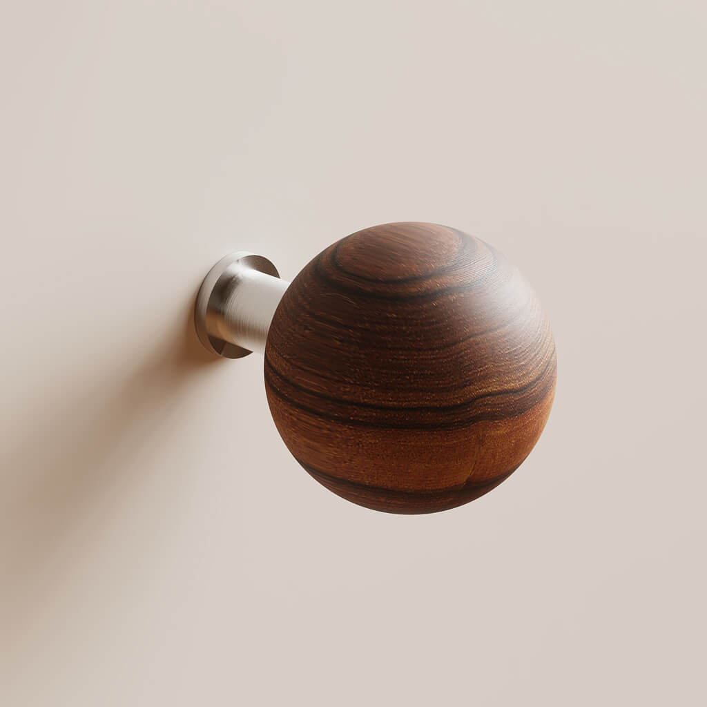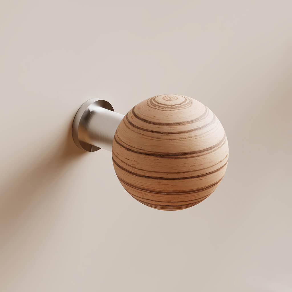 The Jupiter HL-064M handle highlights the natural beauty of wood, complemented by modern elements such as a metal base. The spherical shape creates a sense of completeness and harmony. This furniture handle is for those who appreciate refined details in interior design.
