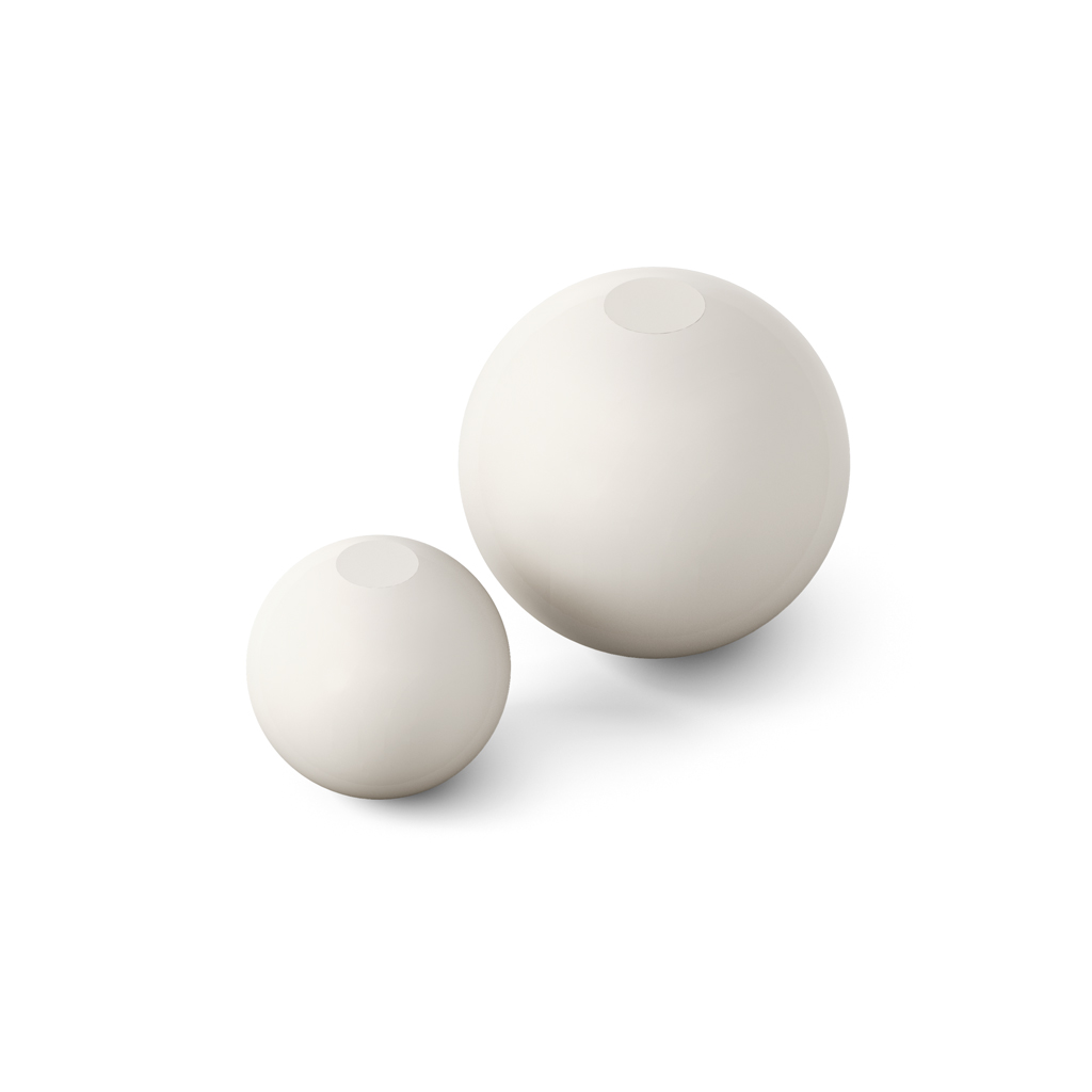 Solid spherical support, supplied with enamel paint. Three color options available – white, gray, and black.