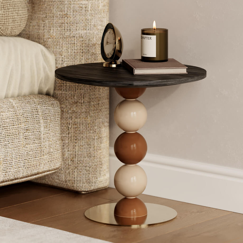 Smooth transitions between individual elements ensure a unified perception of the structure, while rounded shapes soften the visual bulkiness of large furniture. The spherical shape of each element is crafted with jewel-like precision on high-tech turning equipment, guaranteeing perfect coaxial alignment of all components and absolute symmetry relative to the central axis.