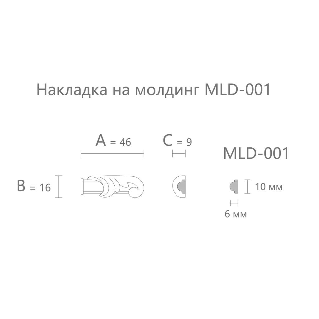 16 mm — width. This parameter corresponds to the cross-section width of the MLD-001 molding. During installation, the tip precisely covers the end plane of the molding in width, without extending beyond the side edges. This ensures a neat, 'flush' transition in width and the absence of overhanging edges.