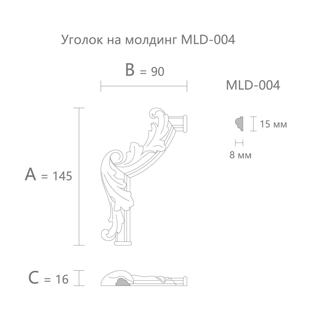 Molding MLD-004 — in the section of STAVROS millwork products. Left and right corner elements, central overlays of the MLD-4 series — in the section decoration for moldings. All items can be selected in a single order.