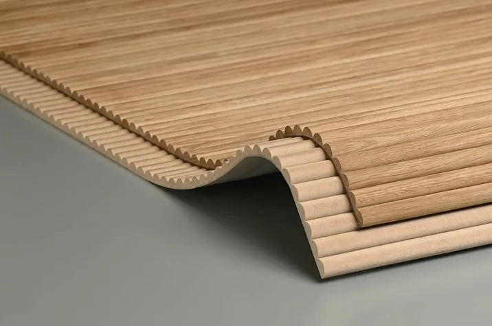 Rigid slatted panels on an MDF substrate — a classic solution for flat walls, furniture fronts, and ceilings. Ensures maximum geometric precision and uniform slat spacing.