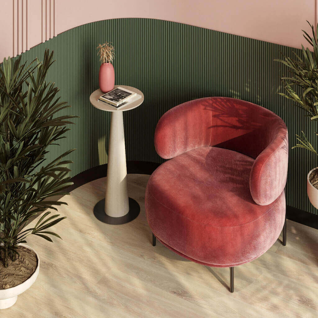 A study is a space where concentration is important. A slatted wall behind a desk or bookshelf adds visual 'anchorage'—a feeling that there is support, structure behind you. In dark shades, such a wall creates an atmosphere of intimacy and focus. For a study, a combination looks organic: several PAN-002 panels in the long format, painted in a deep neutral color, with spot lighting directed along the slatted surface. This works both in a residential interior, a meeting room, and a small office.