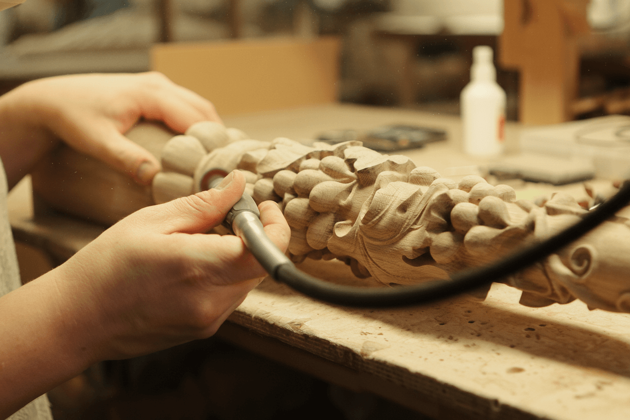 Every detail fills the space with the nobility of natural wood, harmony of lines, and unique character.