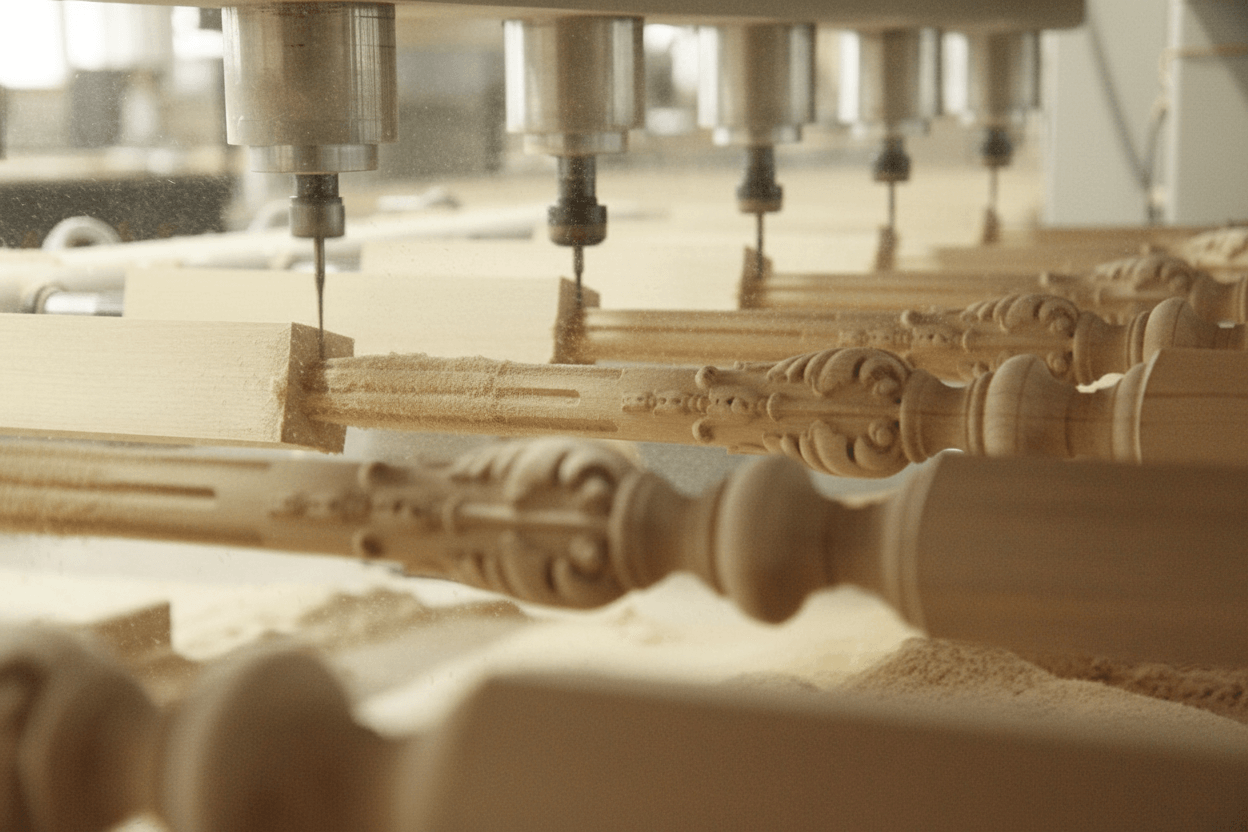 ● Balusters — these are vertical rods that serve as support for the handrail and staircase railing. Balusters give the staircase elegance, grace, and style. In Stavros, you can buy balusters from solid wood in various shapes, sizes, and finishes. You can choose straight, curved, carved, turned, smooth, or fluted balusters, with or without finials.