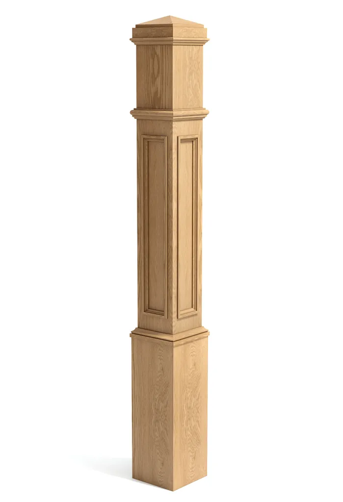 L-112 is a wooden stair newel post executed in a minimalist classical style. It serves as an important load-bearing element of the staircase flight structure and is ideally suited for installation as either a starting (first) or a supporting (flight) newel post.