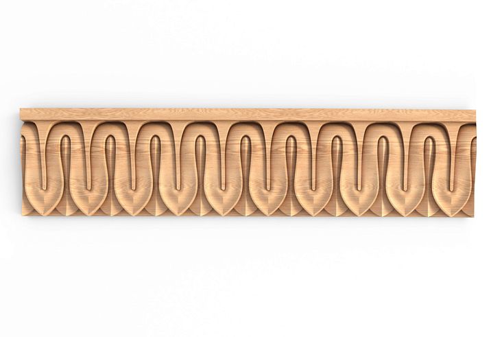 Carved Molding K-009 is designed in the neoclassical style. The pattern in the shape of an elongated leaf looks elegant in cornices and friezes. It is often used for decorative finishing of the upper parts of furniture and doors. An interesting solution for office, library, and billiard room projects. The carved molding adds nobility and grandeur. Wooden molding K-009 harmonizes well with elements of its style and also looks impressive as a standalone decoration for furniture or interiors.